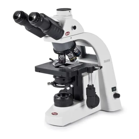 A Siedentopf-type binocular head is available in binocular or trinocular format. The oculars are inclined at 30° with a diopter on the left ocular for individual eye focusing. Interpupillary adjustment is 53mm - 75mm. Two SWH 10x eyepieces (FN 22) are included. The four objectives are infinity corrected Plan Epi 5x, 10x, 20x, and 50x set in a ball-bearing mounted quintuple nosepiece.An 80/20 beamsplitter for the trinocular tube can be engaged for photo work. (100% to eyetubes or 80% to phototube & 20% to the eyetube.) 30mm ID eyetube. Please note that the trinocular port requires an adapter appropriate for your camera.